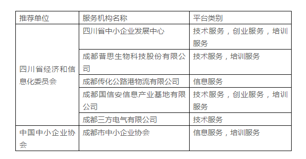 2017年度國(guó)家中小企業(yè)公共服務(wù)示范平臺(tái)名單