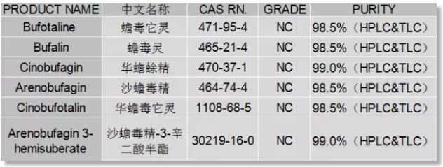 △普思生物蟾酥系列對(duì)照品
