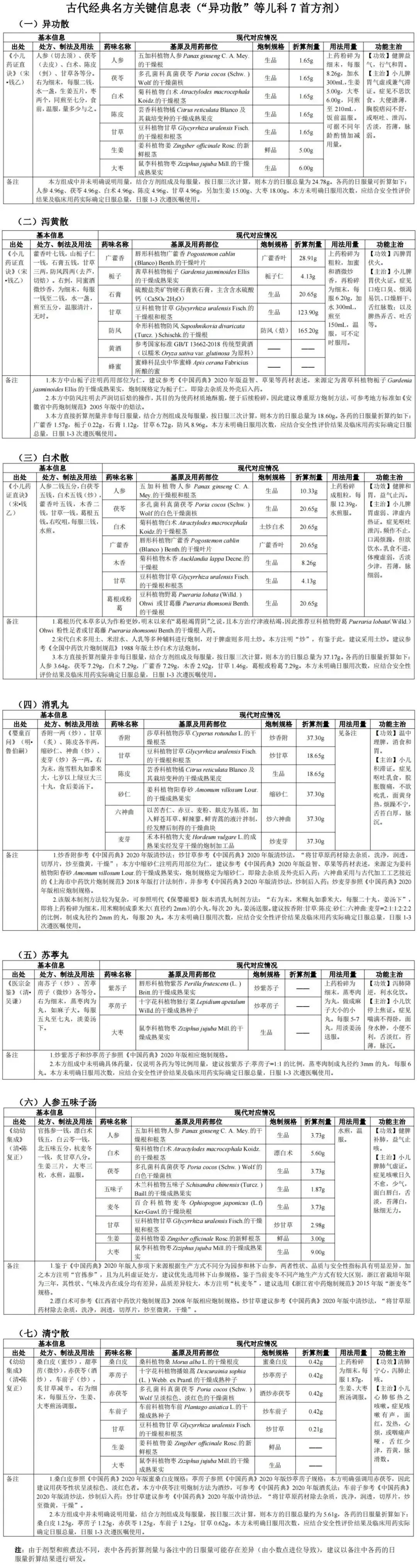 關于發(fā)布《古代經(jīng)典名方關鍵信息表(“異功散”等兒科7首方劑)》的通知