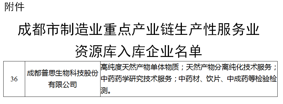 喜報!成都普思生物入選成都市制造業(yè)重點(diǎn)產(chǎn)業(yè)鏈生產(chǎn)性服務(wù)業(yè)資源庫