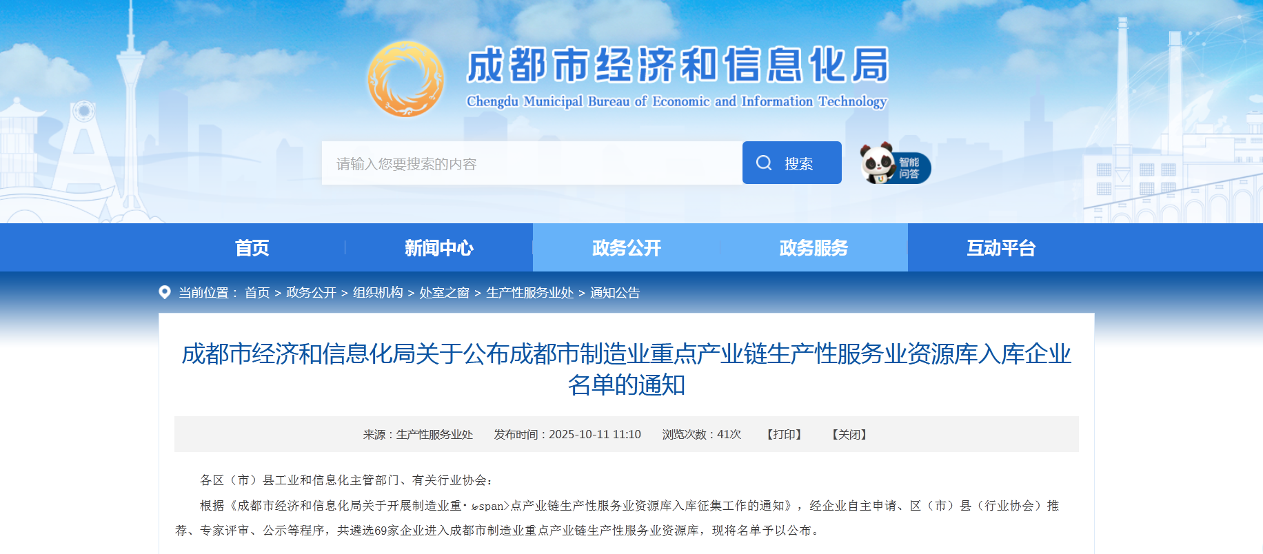 今日,成都市經(jīng)濟(jì)和信息化局公布“成都市制造業(yè)重點(diǎn)產(chǎn)業(yè)鏈生產(chǎn)性服務(wù)業(yè)資源庫擬入庫名單”。