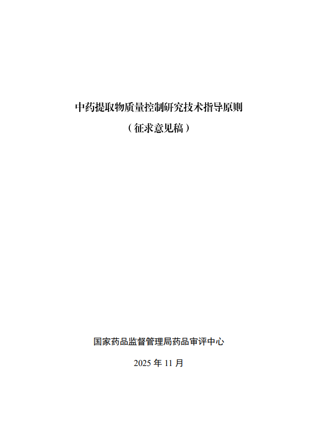 新指導原則征求意見|CDE最新發(fā)布《中藥提取物質(zhì)量控制研究技術指導原則(征求意見稿)》