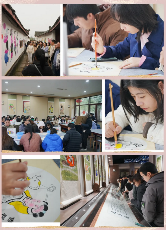 走進(jìn)素有“年畫之鄉(xiāng)”美譽(yù)的綿竹年畫村,大家仿佛步入了流動(dòng)的民間藝術(shù)長(zhǎng)廊。漫步村中,福娃、門神、魁星踢斗等經(jīng)典年畫躍然墻上,也有許多詼諧幽默的獨(dú)版小品如《老鼠嫁女》、《三猴燙豬》等。在“三彩畫坊”等非遺工坊,同事們親手體驗(yàn)拓印、彩繪,感受“三分畫七分染”的匠心獨(dú)運(yùn),將一份專屬的年畫記憶帶回家。