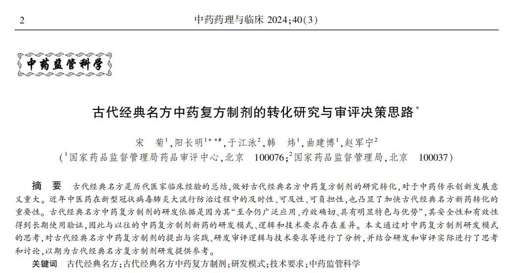 古代經(jīng)典名方中藥復(fù)方制劑的轉(zhuǎn)化研究與審評(píng)決策思路