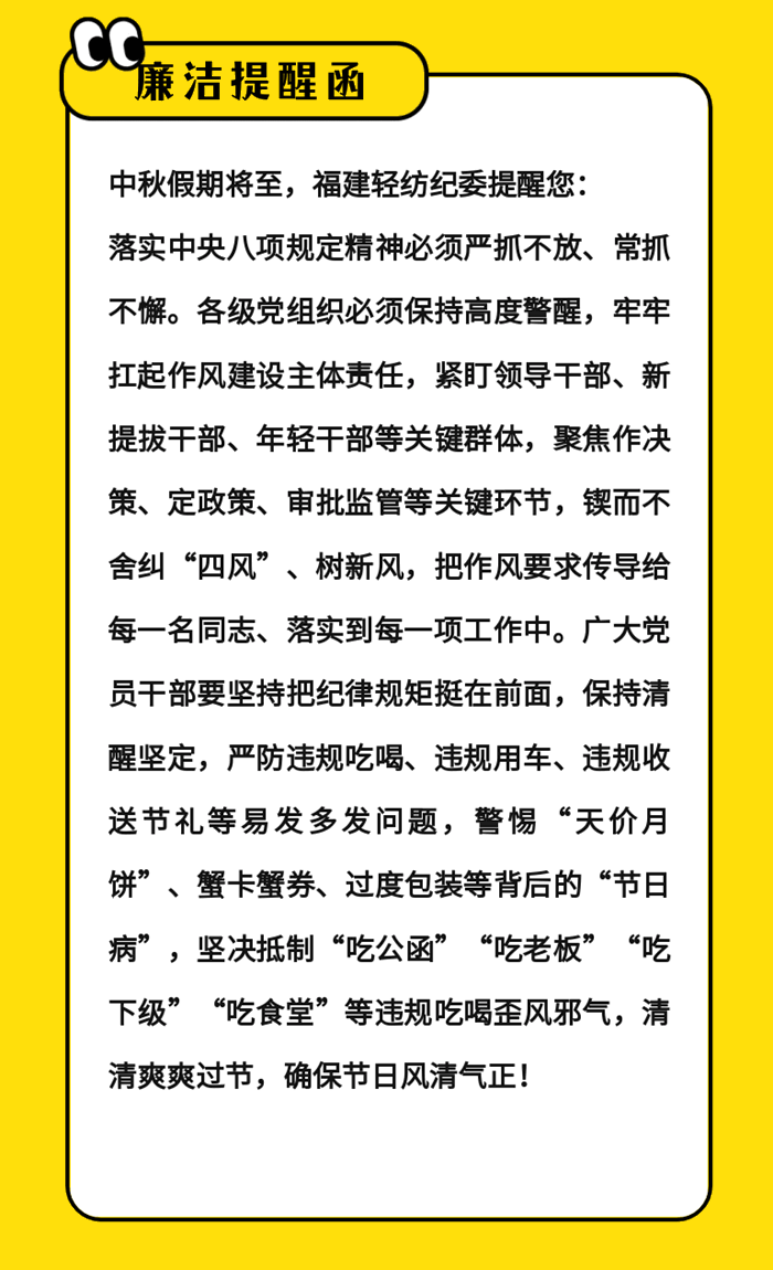 中秋廉潔提醒函——福建輕紡紀委